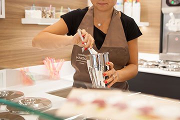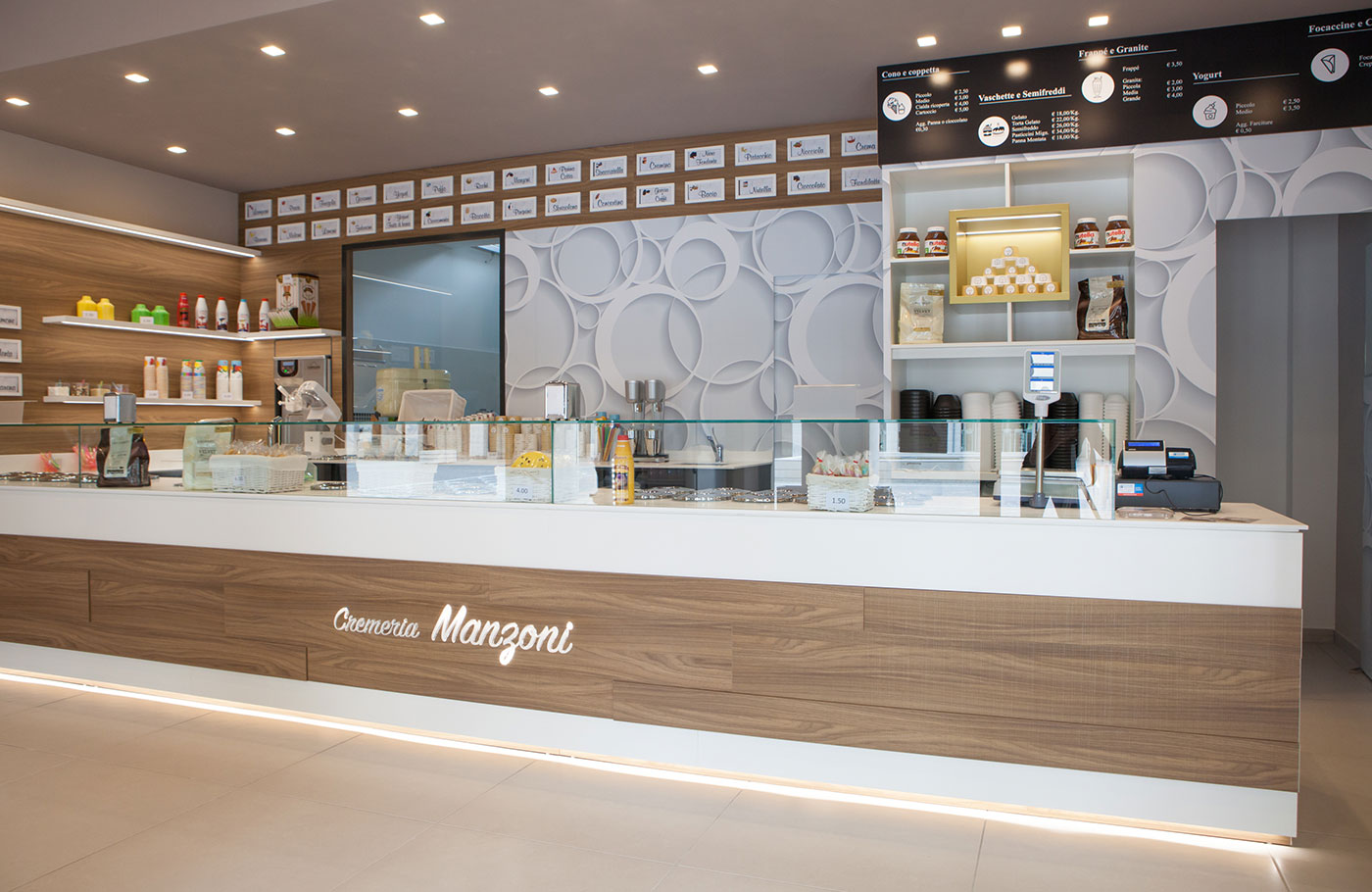 La Gelateria Cremeria Manzoni è situata nella piazza centrale di Viadana da cui prende il nome.