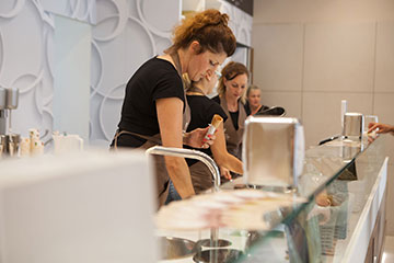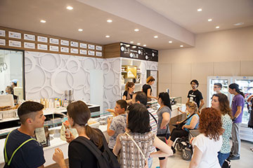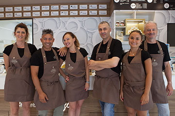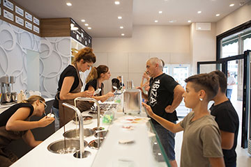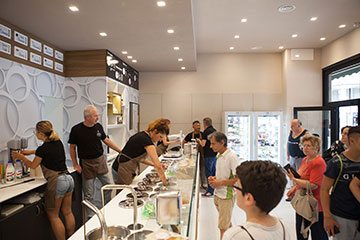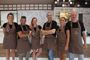 L'idea di iniziare questa attività nella suddetta piazza nasce da due vecchi amici, nonchè soci per oltre 20 anni, di una nota gelateria a Luzzara. Ai due artigiani si è unita con entusiasmo una giovane donna anch'essa con esperienza decennale nel settore. Questa squadra oggi vuole trasformare un mestiere in un'arte, fornendo cordialità e qualità.